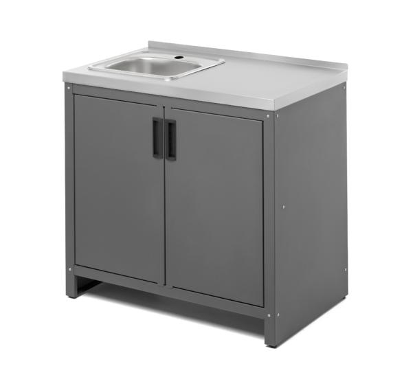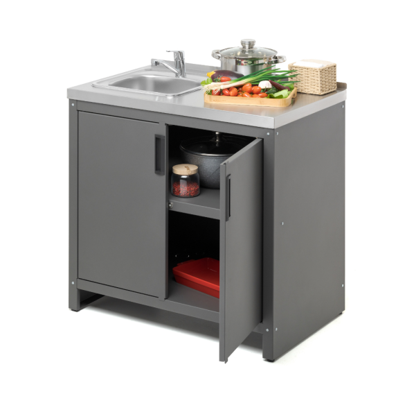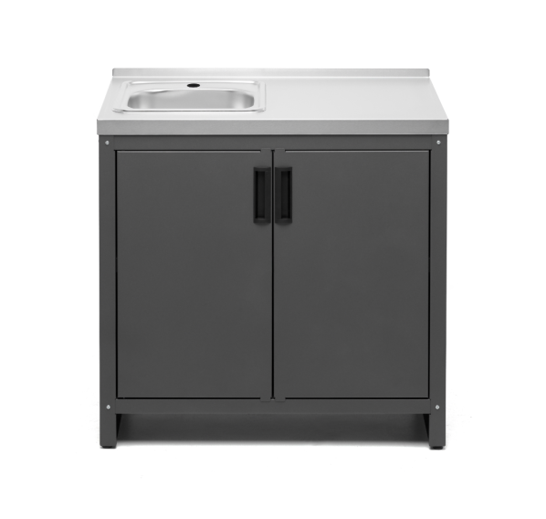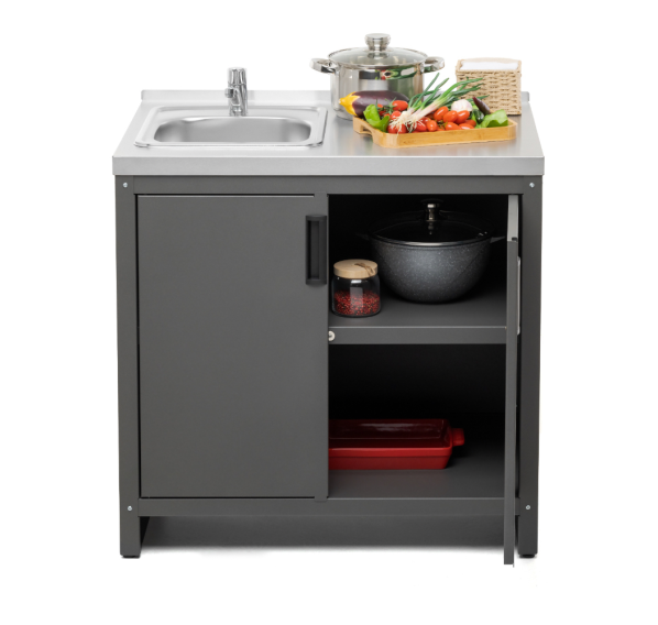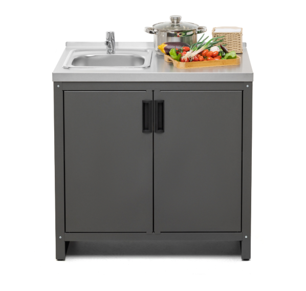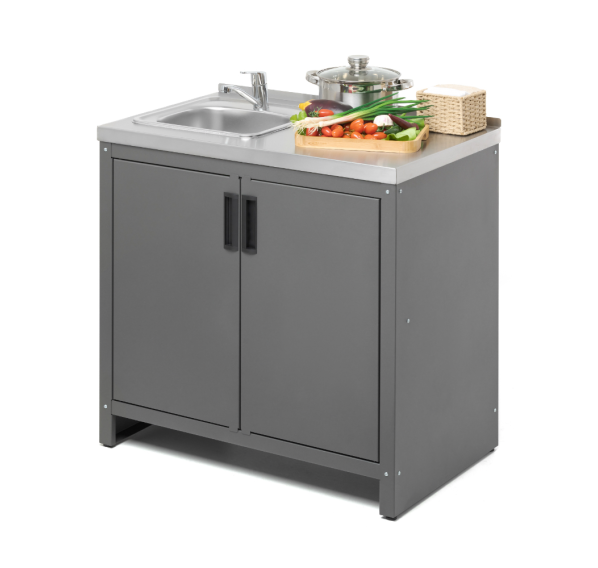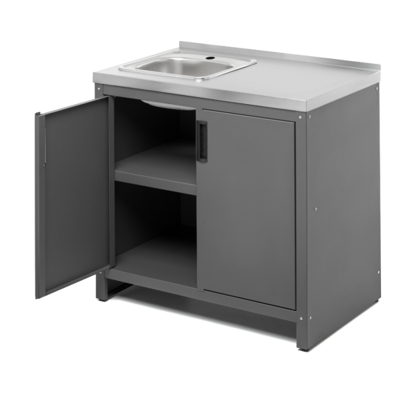 Тумба с мойкой Gratar Patio преобразует Вашу зону барбекю в полноценно оборудованную уличную кухню. Благодаря прочной столешнице из нержавеющей стали и нескольким полкам, здесь легко разместится вся необходимая утварь и продукты. Закрывающиеся дверцы предотвращают попадание грязи и мусора внутрь тумбы. Мойка позволяет оперативно помыть руки, очистить овощи и фрукты, сполоснуть чашки и миски, избавляя Вас от необходимости постоянно ходить к основной раковине.