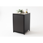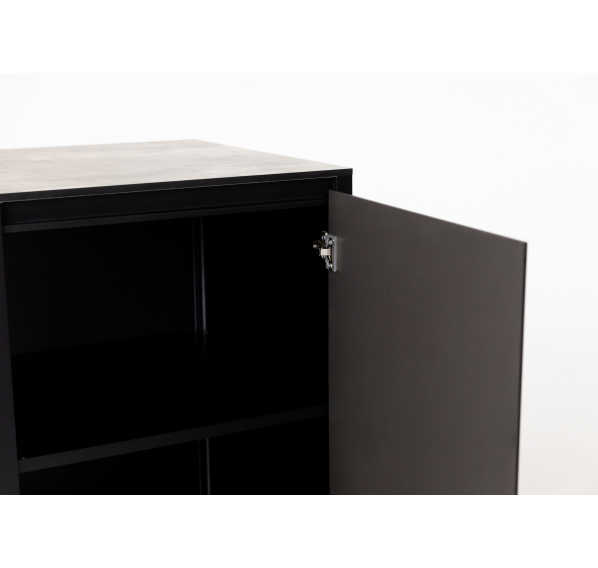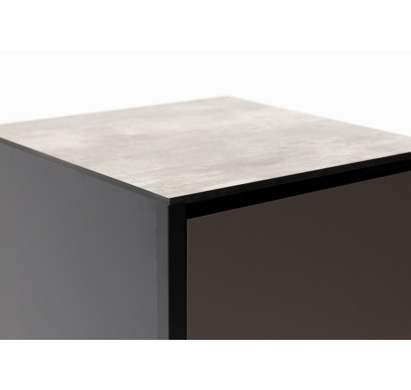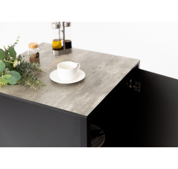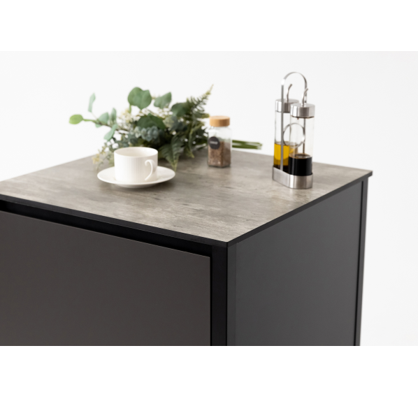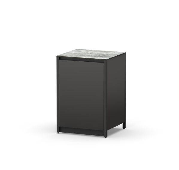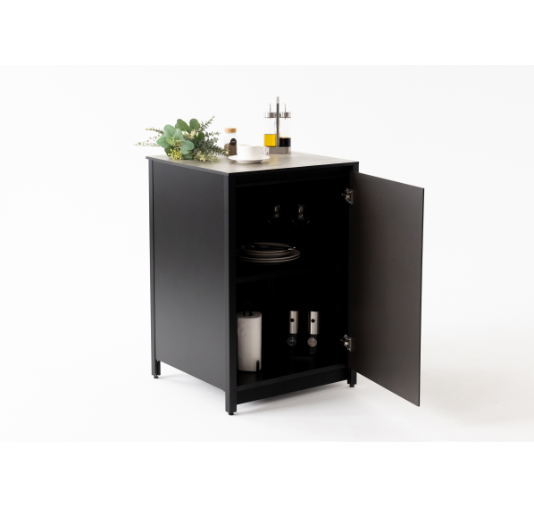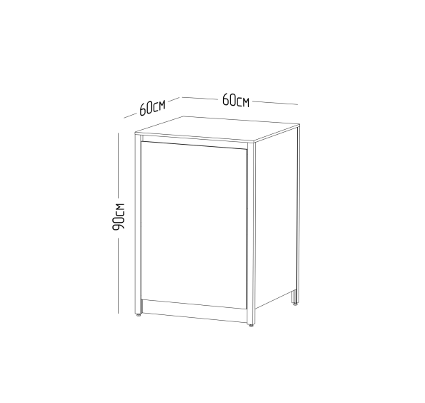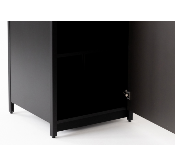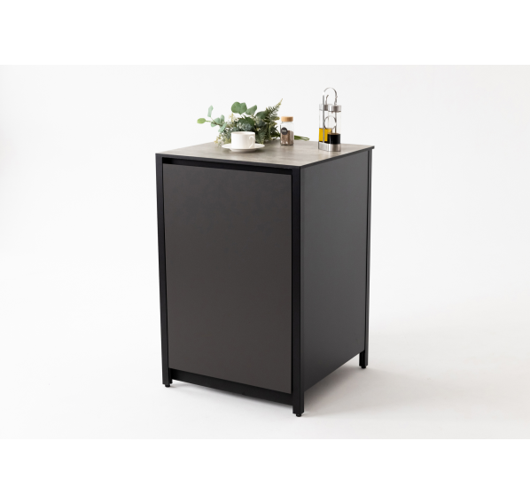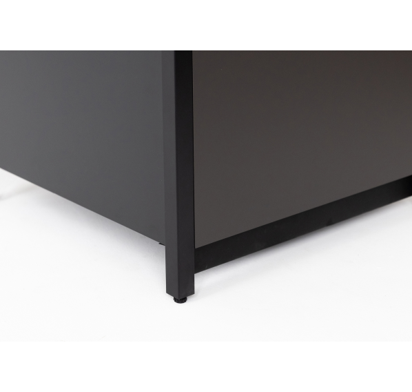 Он изготовлен из прочных материалов и отличается минималистичным дизайном. Алюминиевый каркас, влагостойкие столешница и фасад делают этот шкаф надёжным и функциональным. Ножки регулируются для максимально удобного использования.