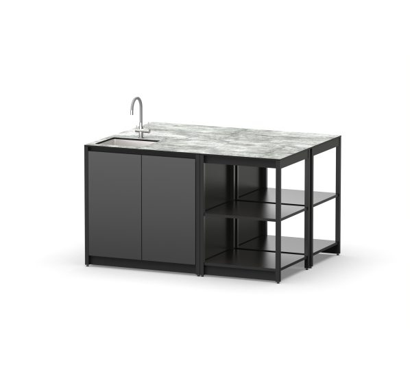 разделочный стол - 2 шт., шкаф - 2 шт., мойка, выпуск, сифон, крепления для модулей