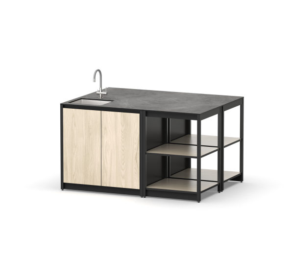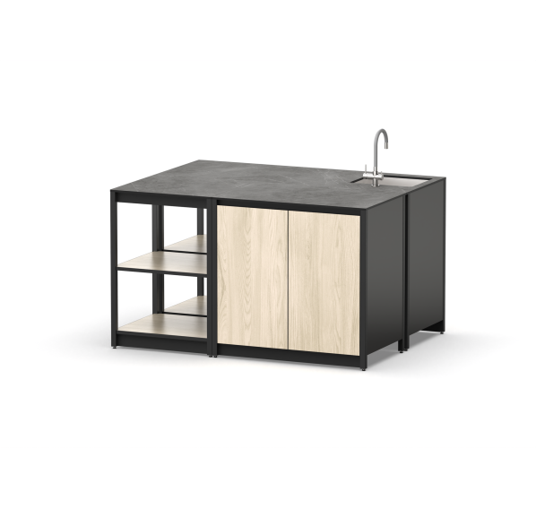 разделочный стол - 2 шт., шкаф - 2 шт., мойка, выпуск, сифон, крепления для модулей
