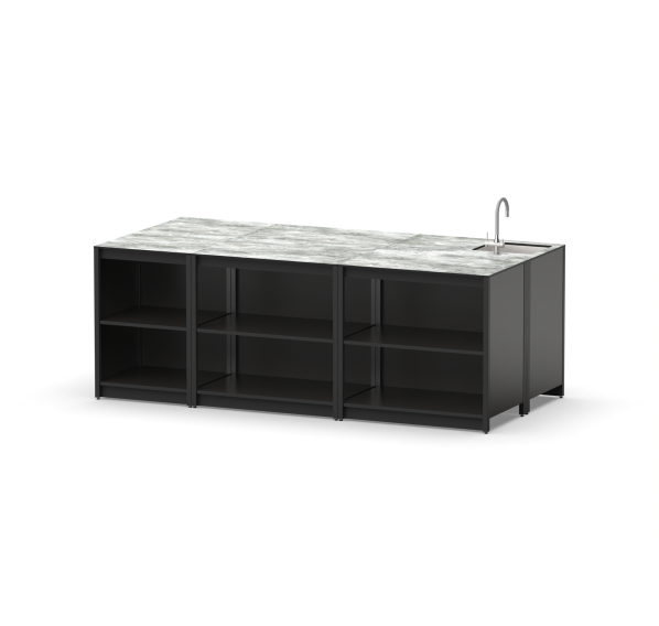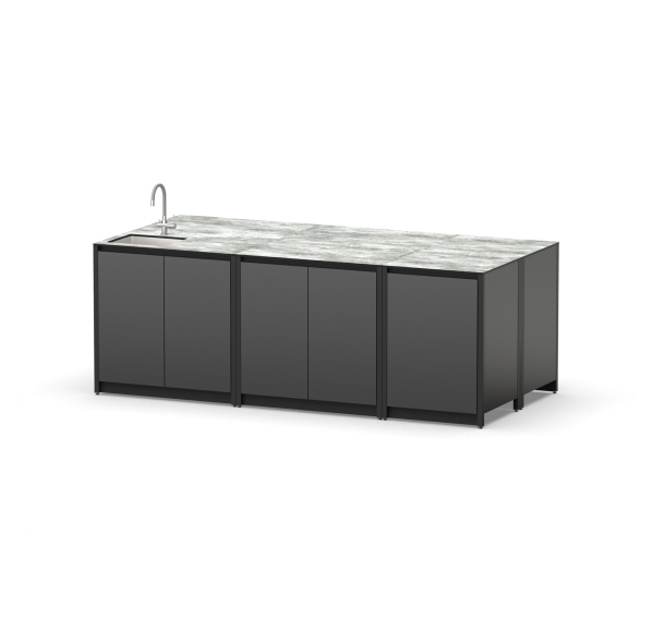 разделочный стол - 3 шт., шкаф - 3 шт., мойка, выпуск, сифон, боковая стенка - 2 шт., крепления для модулей
