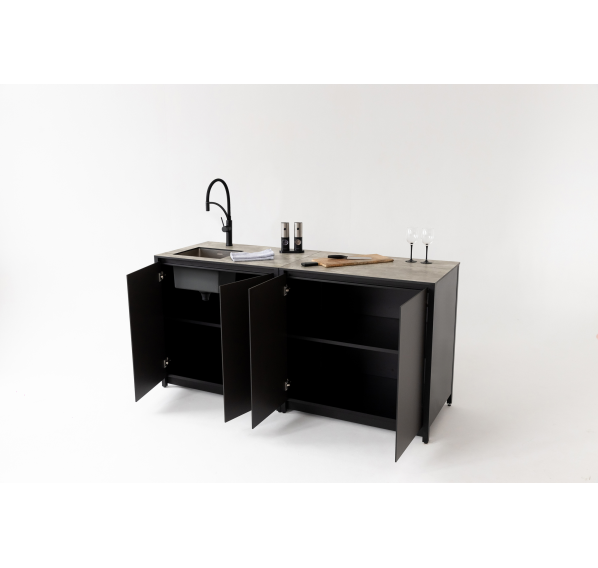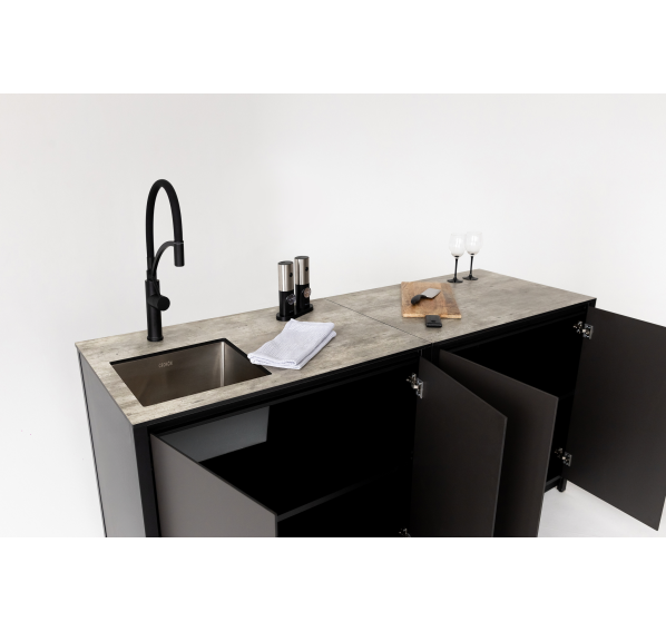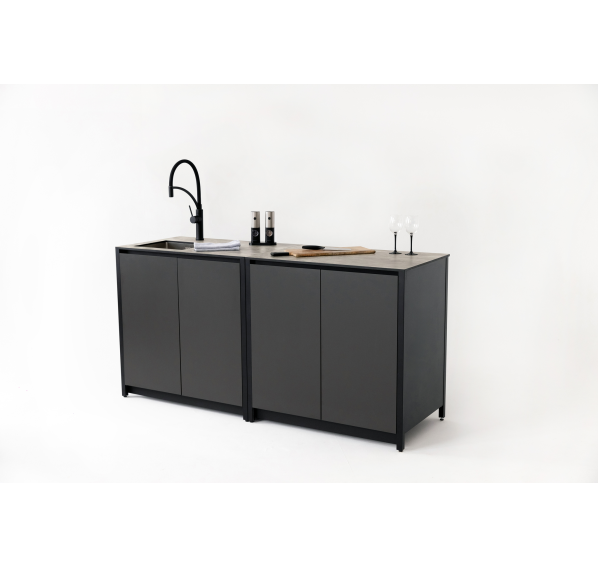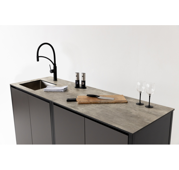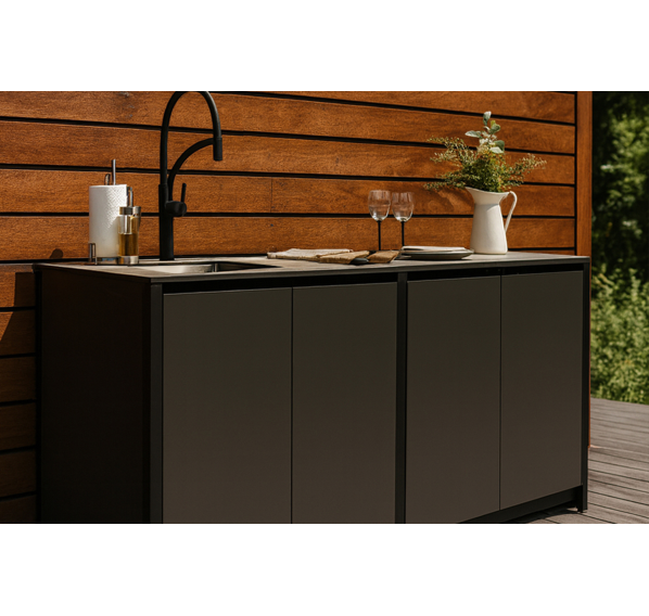 Гарнитур уличной кухни Cronon Lounge — идеальное решение для комфортного отдыха на свежем воздухе! Благодаря водонепроницаемым материалам (HPL-каркасу и столешнице) выдерживает любые погодные условия. Регулируемые ножки обеспечивают устойчивость даже на неровных поверхностях. Встроенная мойка из нержавеющей стали упрощает процесс готовки и уборки. Идеально дополнит территорию дачи или загородного дома.