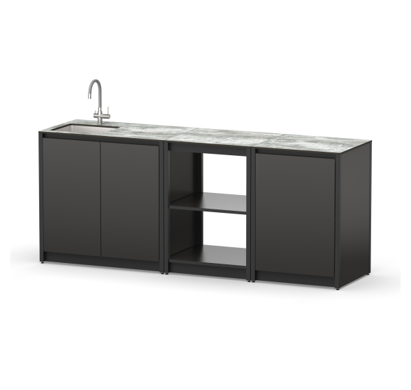 Гарнитур уличной кухни Cronon Lounge — идеальное решение для комфортного отдыха на свежем воздухе! Благодаря водонепроницаемым материалам (HPL-каркасу и столешнице) выдерживает любые погодные условия. Регулируемые ножки обеспечивают устойчивость даже на неровных поверхностях. Встроенная мойка из нержавеющей стали упрощает процесс готовки и уборки. Идеально дополнит территорию дачи или загородного дома.