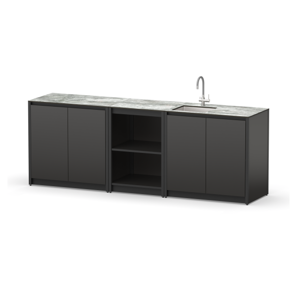 Гарнитур уличной кухни Cronon Lounge — идеальное решение для комфортного отдыха на свежем воздухе! Благодаря водонепроницаемым материалам (HPL-каркасу и столешнице) выдерживает любые погодные условия. Регулируемые ножки обеспечивают устойчивость даже на неровных поверхностях. Встроенная мойка из нержавеющей стали упрощает процесс готовки и уборки. Идеально дополнит территорию дачи или загородного дома.