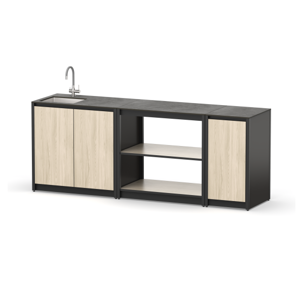 Гарнитур уличной кухни Cronon Lounge — идеальное решение для комфортного отдыха на свежем воздухе! Благодаря водонепроницаемым материалам (HPL-каркасу и столешнице) выдерживает любые погодные условия. Регулируемые ножки обеспечивают устойчивость даже на неровных поверхностях. Встроенная мойка из нержавеющей стали упрощает процесс готовки и уборки. Идеально дополнит территорию дачи или загородного дома.