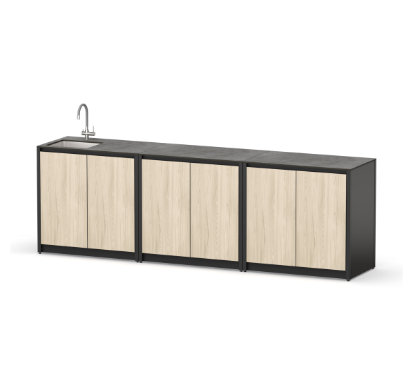Гарнитур уличной кухни Cronon Lounge — идеальное решение для комфортного отдыха на свежем воздухе! Благодаря водонепроницаемым материалам (HPL-каркасу и столешнице) выдерживает любые погодные условия. Регулируемые ножки обеспечивают устойчивость даже на неровных поверхностях. Встроенная мойка из нержавеющей стали упрощает процесс готовки и уборки. Идеально дополнит территорию дачи или загородного дома.