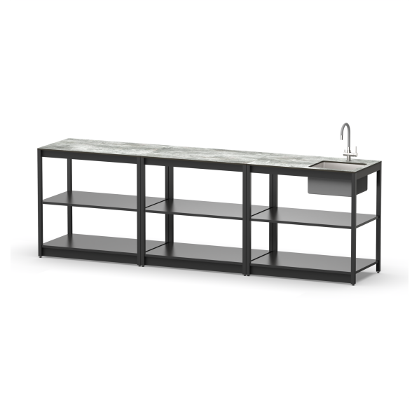 Гарнитур уличной кухни Cronon Lounge — идеальное решение для комфортного отдыха на свежем воздухе! Благодаря водонепроницаемым материалам (HPL-каркасу и столешнице) выдерживает любые погодные условия. Регулируемые ножки обеспечивают устойчивость даже на неровных поверхностях. Встроенная мойка из нержавеющей стали упрощает процесс готовки и уборки. Идеально дополнит территорию дачи или загородного дома.