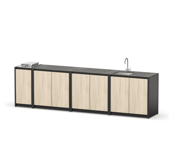 Гарнитур уличной кухни Cronon Lounge — идеальное решение для комфортного отдыха на свежем воздухе! Благодаря водонепроницаемым материалам (HPL-каркасу и столешнице) выдерживает любые погодные условия. Регулируемые ножки обеспечивают устойчивость даже на неровных поверхностях. Встроенная мойка из нержавеющей стали упрощает процесс готовки и уборки. Идеально дополнит территорию дачи или загородного дома.