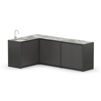 Гарнитур уличной кухни Cronon Lounge — идеальное решение для комфортного отдыха на свежем воздухе! Благодаря водонепроницаемым материалам (HPL-каркасу и столешнице) выдерживает любые погодные условия. Регулируемые ножки обеспечивают устойчивость даже на неровных поверхностях. Встроенная мойка из нержавеющей стали упрощает процесс готовки и уборки. Идеально дополнит территорию дачи или загородного дома.
