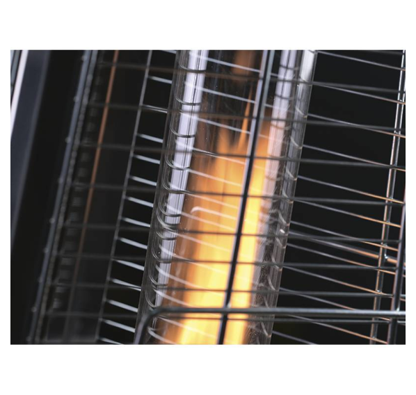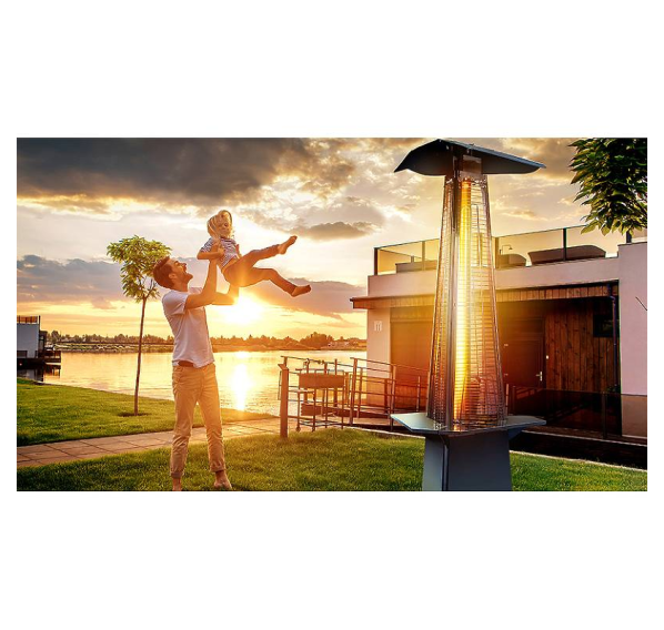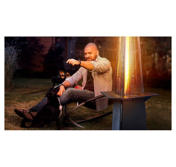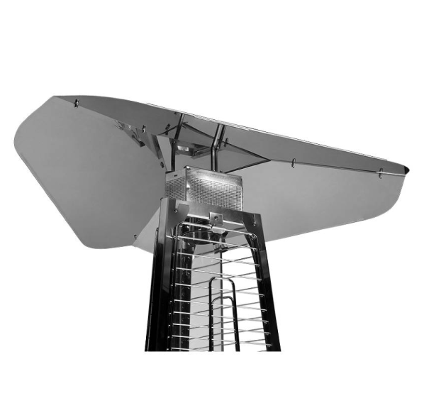 Уличный камин изготовлен из устойчивой к коррозии легированной нержавеющей стали и защищён от попадания атмосферных осадков сверху четырёхгранным отражателем, площадь поверхности которого составляет 0,5 м². За безопасность эксплуатации отвечает многоуровневая система защиты. Датчик наклона отключает пламя при наклоне газового обогревателя более чем на 45°, термоэлектрический датчик и электромагнитный клапан сразу же останавливают подачу газа в критических ситуациях, таких как затухание пламени или утечка газа. За счёт встроенной колёсной базы обогреватель свободно и безопасно можно перемещать по любой поверхности.