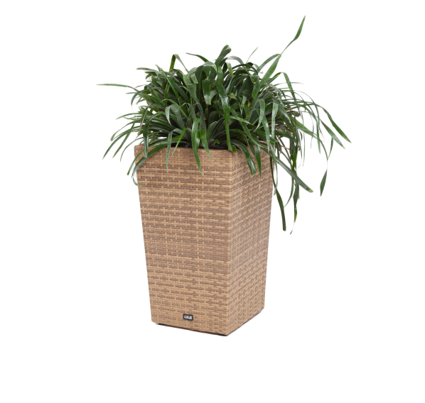 Плетеное кашко «Капучино» подходит для комнатных и уличных растений. Изготовлено из плоского искусственного ротанга соломенного цвета. Обладает высокой стойкостью к погодным условиям, перепадам температуры, не подвергается коррозии, поэтому можно использовать на открытом воздухе круглый год.