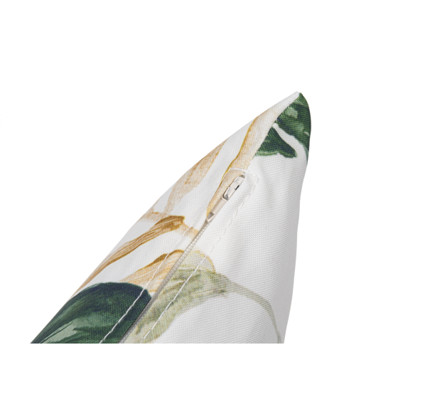 Подушка имеет размер 45х45 см и скрытую молнию. Внутри наполнитель синтепух. Чехол съёмный.