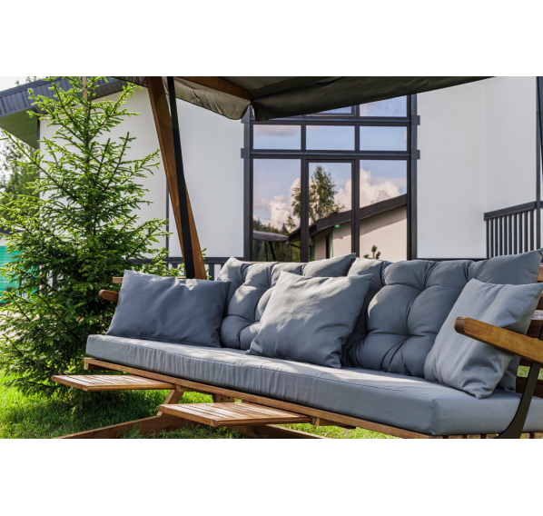 Подушки со съемными чехлами входят в комплект с качелями.