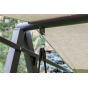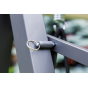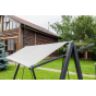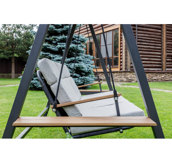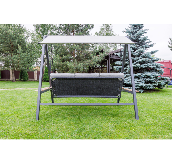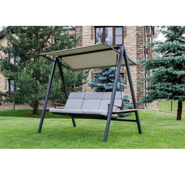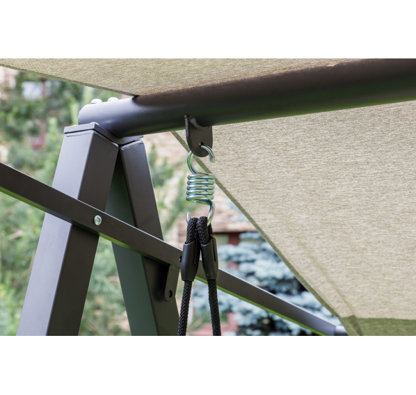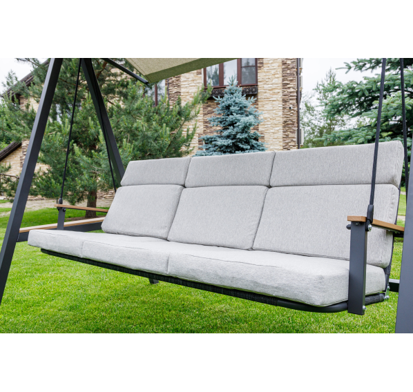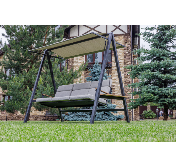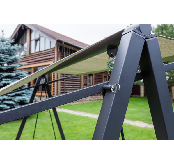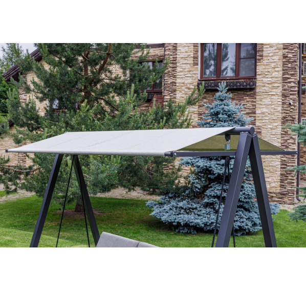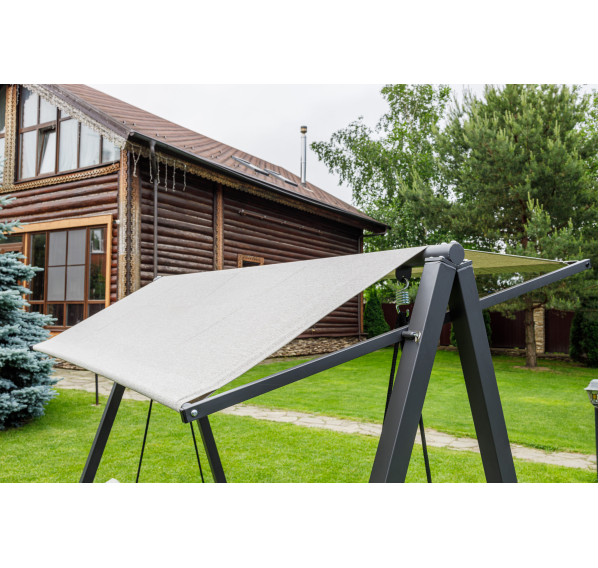 Металлические детали окрашены в электростатическом поле и устойчивы к коррозии. Подушки и крыша изготовлены из специальной уличной ткани, устойчивой к солнцу, ультрафиолетовым лучам, влаге, грязи и пятнам.