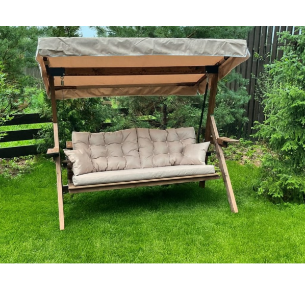 Подушки со съемными чехлами входят в комплект с качелями.