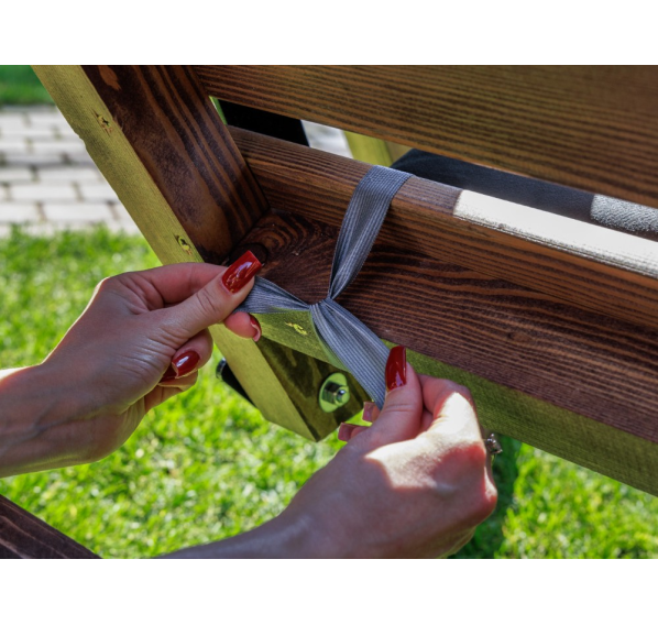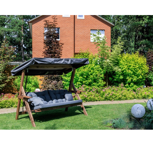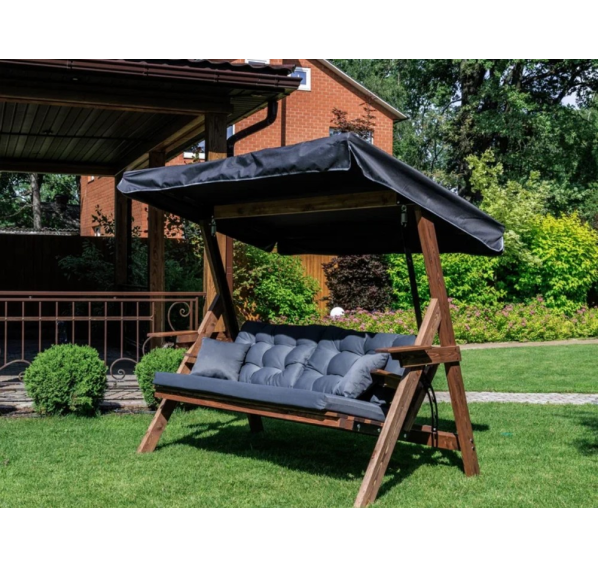 Качели можно легко разложить, и они превратятся в большой лежак, на котором можно комфортно вздремнуть на свежем воздухе.