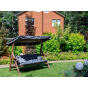 Металлические детали окрашены в электростатическом поле и устойчивы к коррозии. Подушки и крыша изготовлены из специальной уличной ткани, устойчивой к солнцу, ультрафиолетовым лучам, влаге, грязи и пятнам.