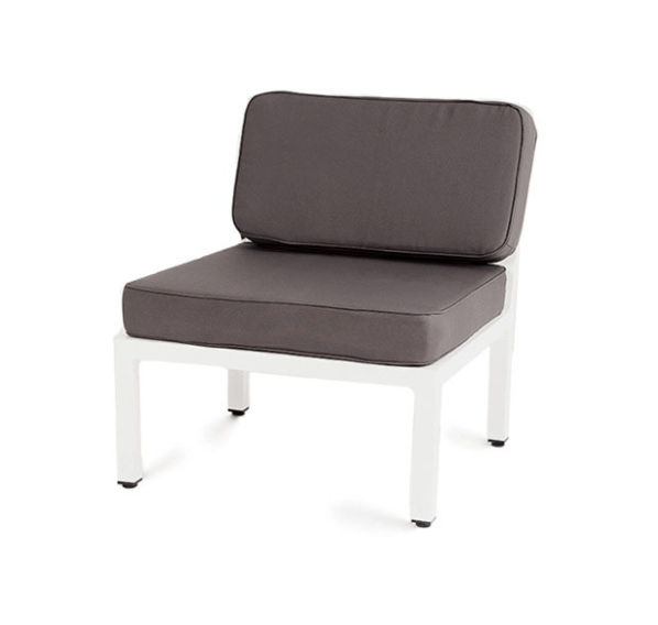Прямой центральный модуль дивана «Глория» выполнен из алюминиевого профиля, легкого, но очень прочного материала.