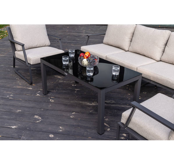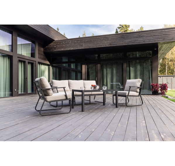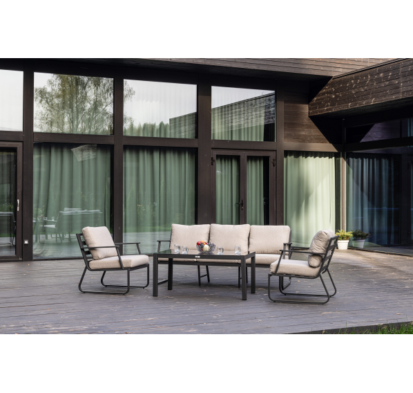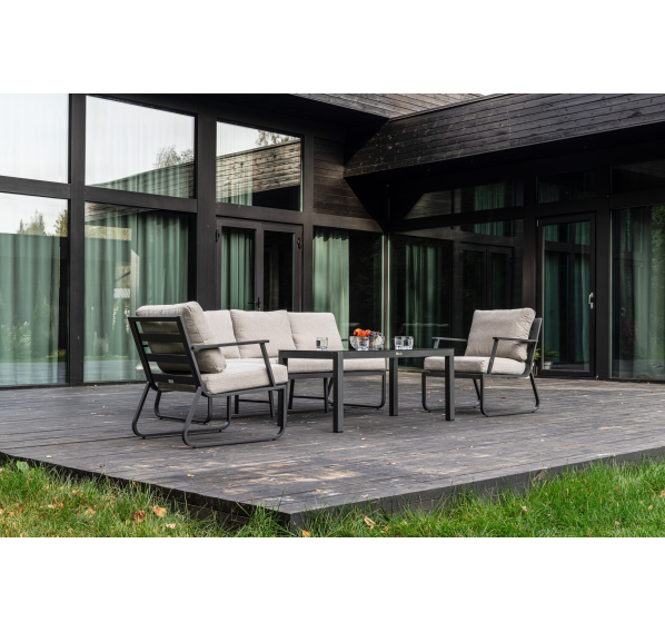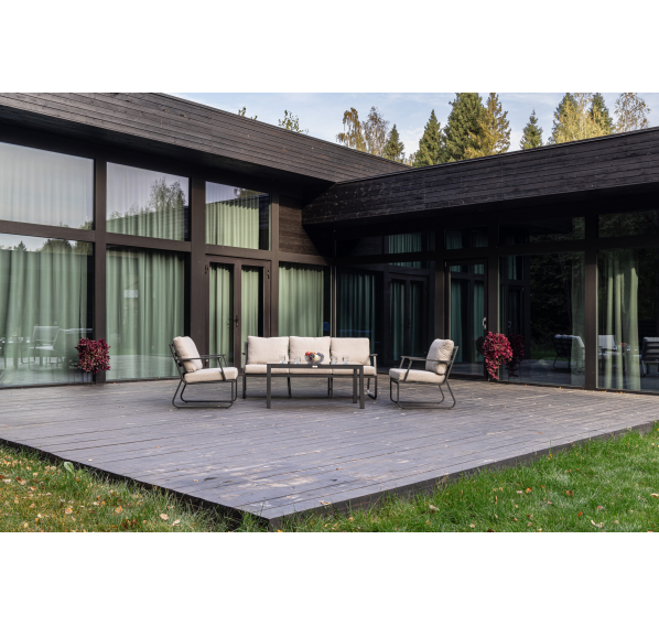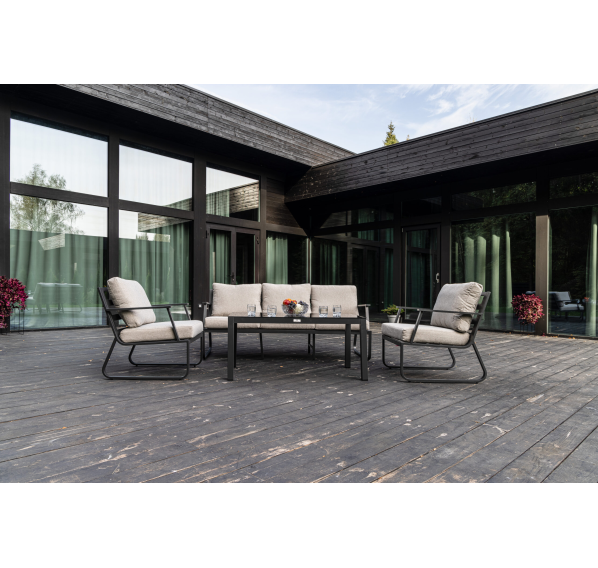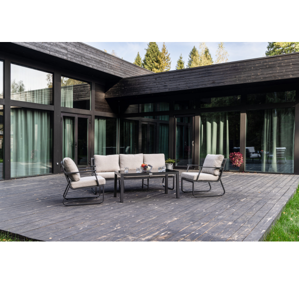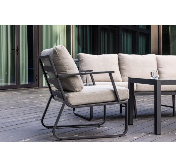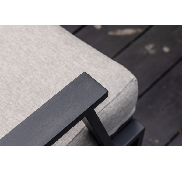 Алюминиевый каркас антрацитового цвета делает мебель легкой и прочной одновременно, что позволяет использовать ее как на открытом воздухе, так и в помещении. Мебель выдерживает любые погодные условия, не выцветает на солнце и не ржавеет под дождем.