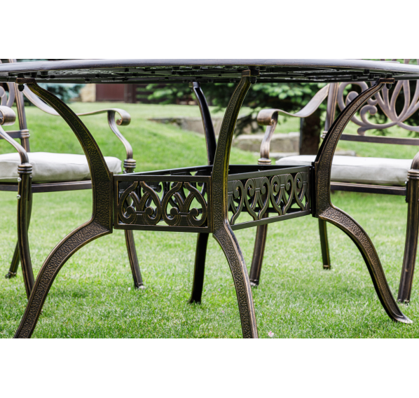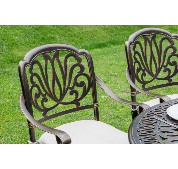 Кресла изготовлены из прочного литого алюминия, который обеспечивает надежность и долговечность конструкции. Этот материал не подвержен коррозии и легко чистится, что делает уход за мебелью максимально простым.