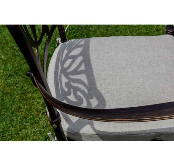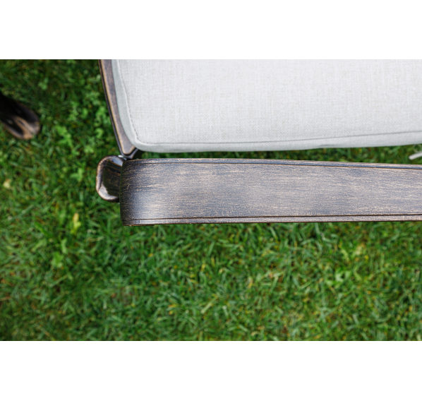 Кресла изготовлены из прочного литого алюминия, который обеспечивает надежность и долговечность конструкции. Этот материал не подвержен коррозии и легко чистится, что делает уход за мебелью максимально простым.