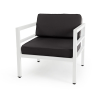 Металлическое садовое кресло в минималистическом стиле «Эстелья». Каркас выполнен из легкого прочного алюминия, который окрашен порошковой высокостойкой краской белого цвета.