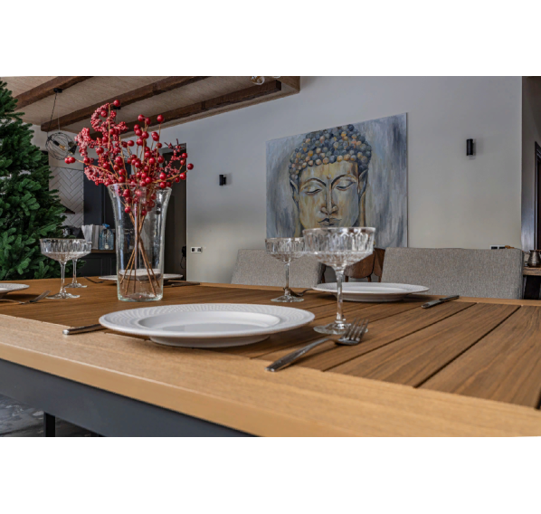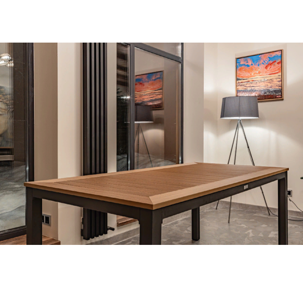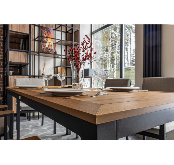 Стол OSCAR на алюминиевом каркасе — это прекрасный выбор для тех, кто ищет надежную и удобную мебель для своего сада или террасы. Алюминиевый каркас обеспечивает прочность и долговечность, а столешница из поливуда выглядит очень естественно и приятно на ощупь.