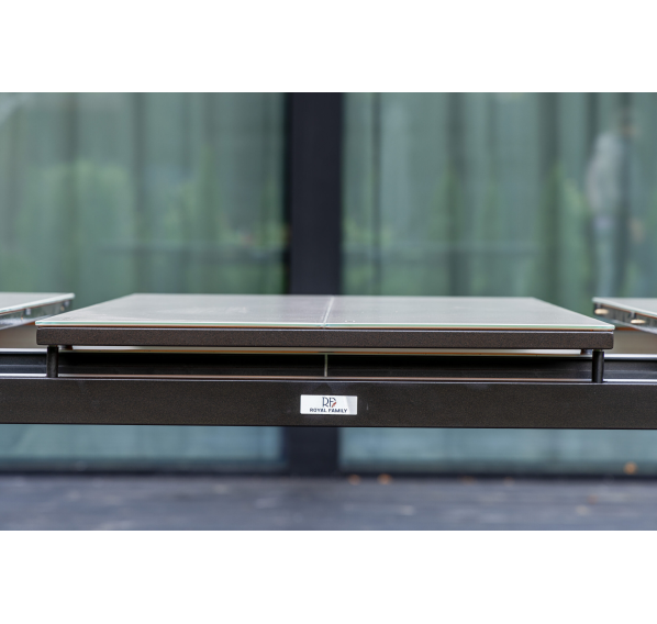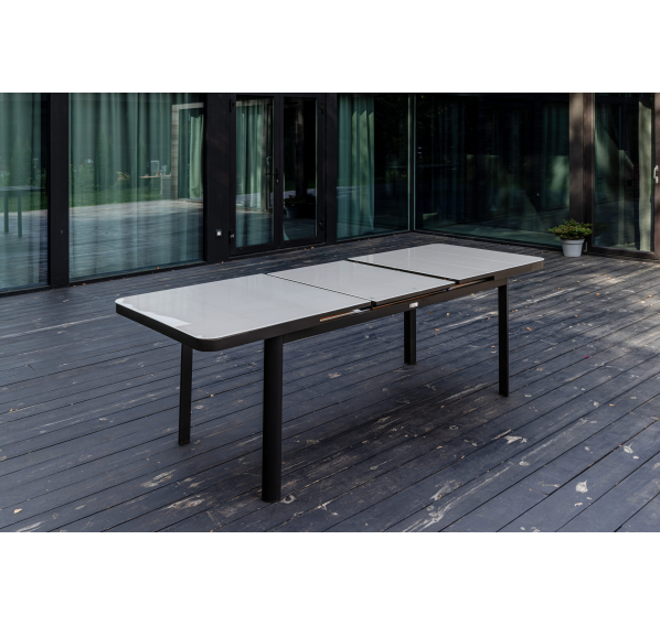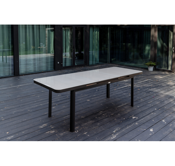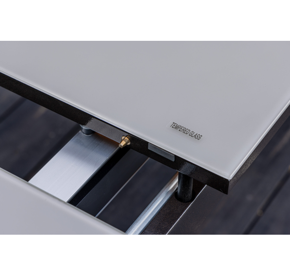 Его алюминиевый каркас обеспечивает прочность и долговечность, а столешница из закаленного стекла придает элегантный внешний вид.