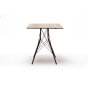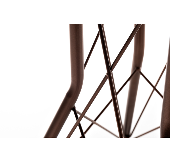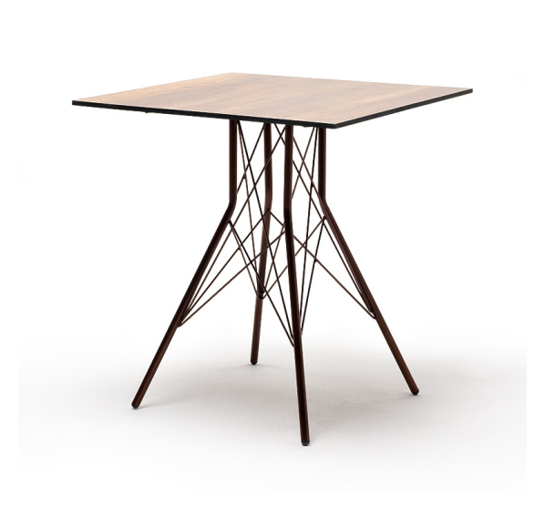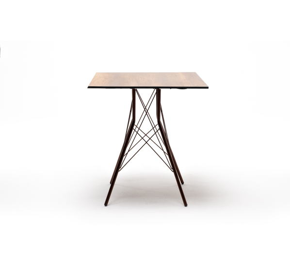 Каркас изготовлен из стали, окрашенной в матовый медный цвет. В качестве столешницы использован высококачественный монолитный компакт-пластика HPL, толщиной 12 мм. Цвет поверхности – «дуб».
