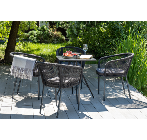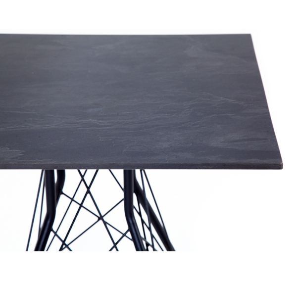 Каркас изготовлен из стали, окрашенной в матовый черный цвет. В качестве столешницы использован высококачественный монолитный компакт-пластика HPL, толщиной 12 мм. Цвет поверхности – «серый гранит».