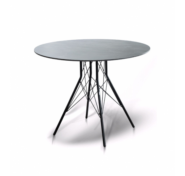 Каркас изготовлен из стали, окрашенной в матовый черный цвет. В качестве столешницы использован высококачественный монолитный компакт-пластика HPL, толщиной 12 мм. Цвет поверхности – «серый гранит».