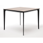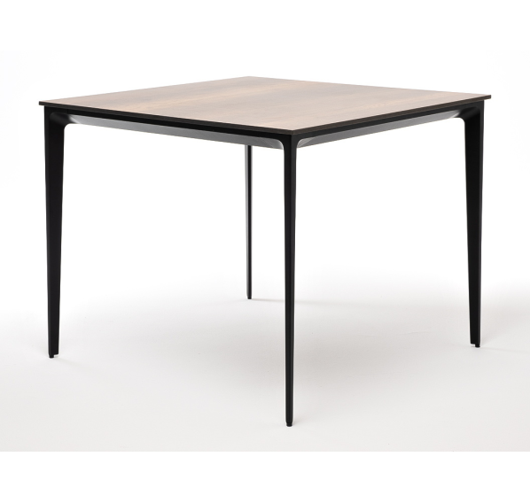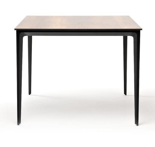 Столешница выполнена из современного высококачественного монолитного компакт-пластик HPL, толщиной 12 мм в цвете «дуб». Материал устойчив к высоким температурам, попаданию влаги и может использоваться при любых погодных условиях. Подстолье изготовлено из крашеного алюминия черного цвета.