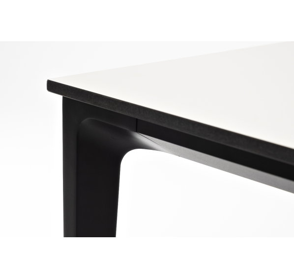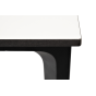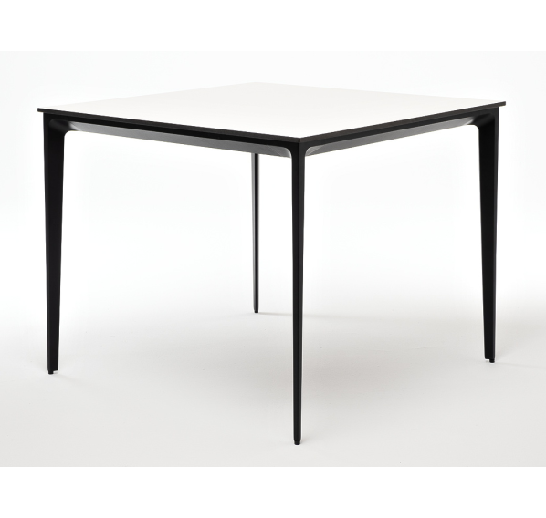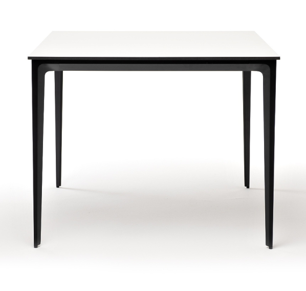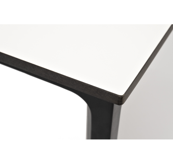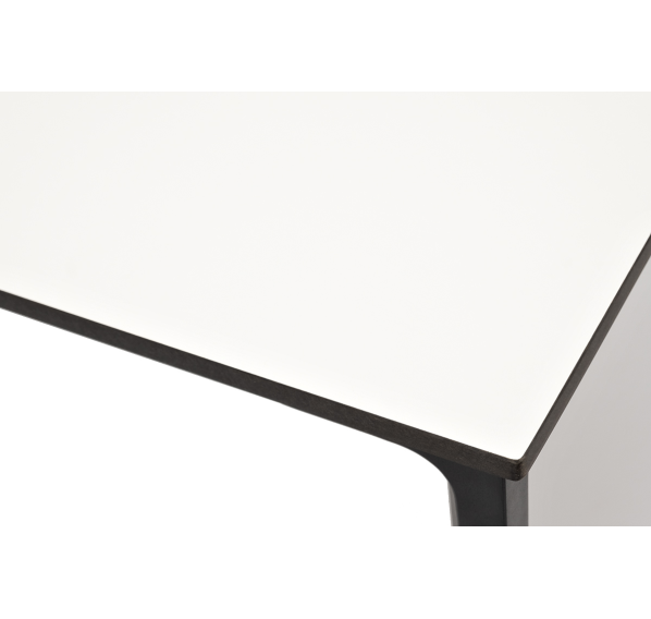 Столешница выполнена из современного высококачественного монолитного компакт-пластик HPL, толщиной 12 мм в молочном цветом. Материал устойчив к высоким температурам, попаданию влаги и может использоваться при любых погодных условиях. Подстолье изготовлено из крашеного алюминия черного цвета.