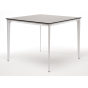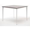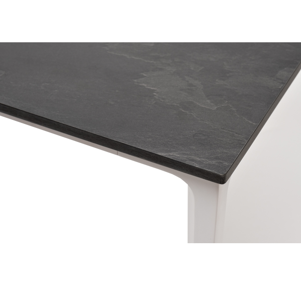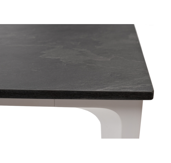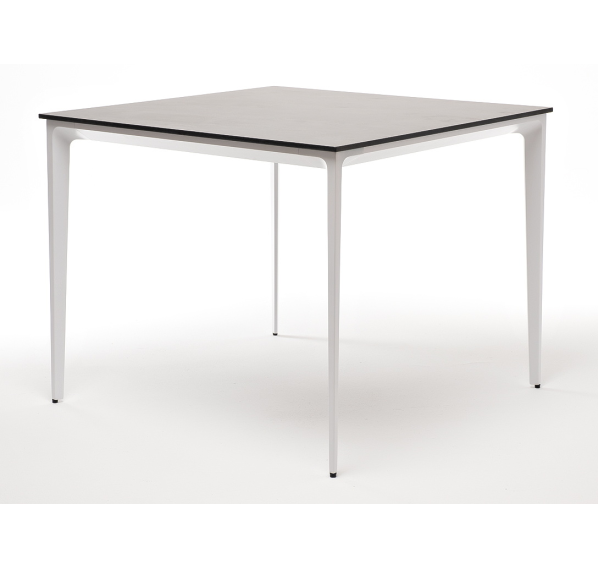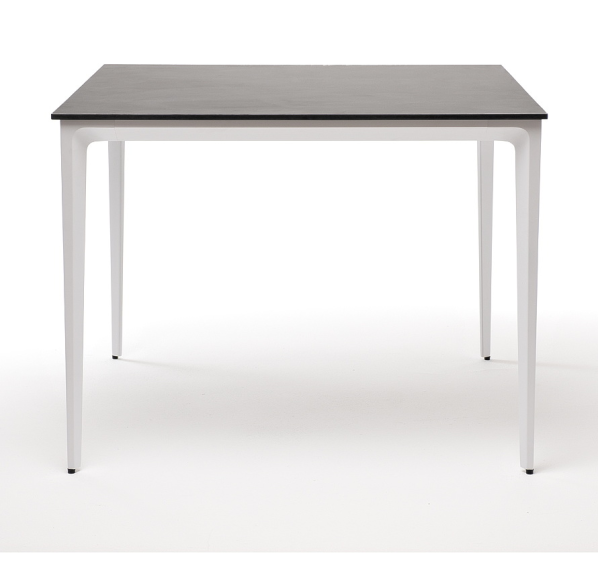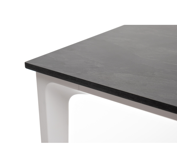 Столешница выполнена из современного высококачественного монолитного компакт-пластик HPL, толщиной 12 мм в цвете «серый гранит». Материал устойчив к высоким температурам, попаданию влаги и может использоваться при любых погодных условиях. Подстолье изготовлено из крашеного алюминия белого цвета.