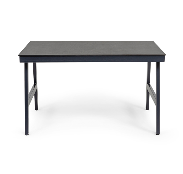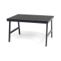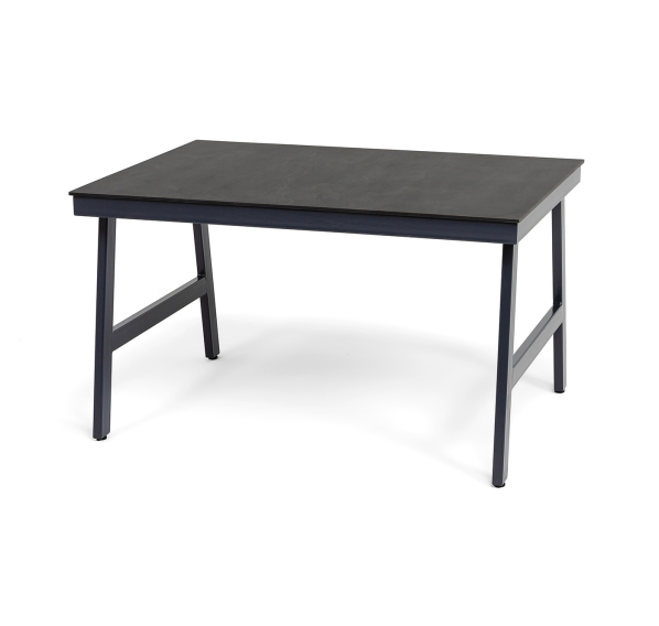 Размер стола - 1300×900×750 мм. Столешница изготовлена из компакт-пластика HPL c рисунком цвета «серый гранит».