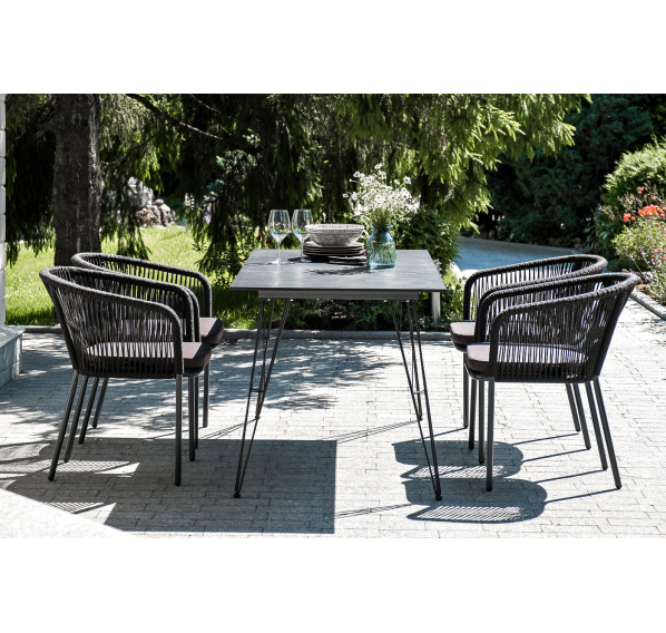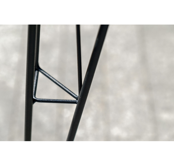 Столешница выполнена из современного высококачественного монолитного компакт-пластик HPL, толщиной 12 мм с цветом под черный мрамор. Материал устойчив к высоким температурам, попаданию влаги и может использоваться и на кухне. Подстолье изготовлено из крашеного металла в цвете «мокрый асфальт».