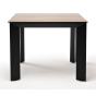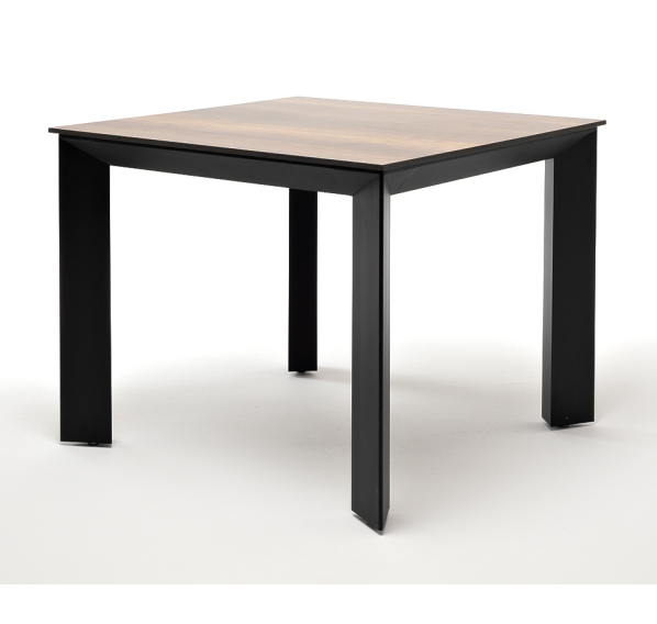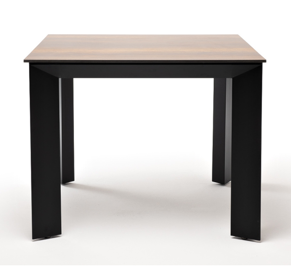 Столешница выполнена из современного высококачественного монолитного компакт-пластик HPL, толщиной 12 мм в цвете «дуб». Материал устойчив к высоким температурам, попаданию влаги и может использоваться как в помещении, так и на открытом пространстве. Подстолье изготовлено из крашеного алюминия черного цвета.