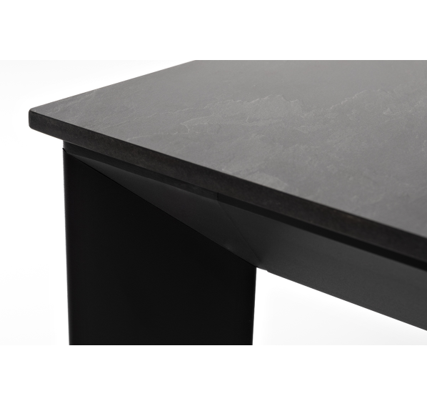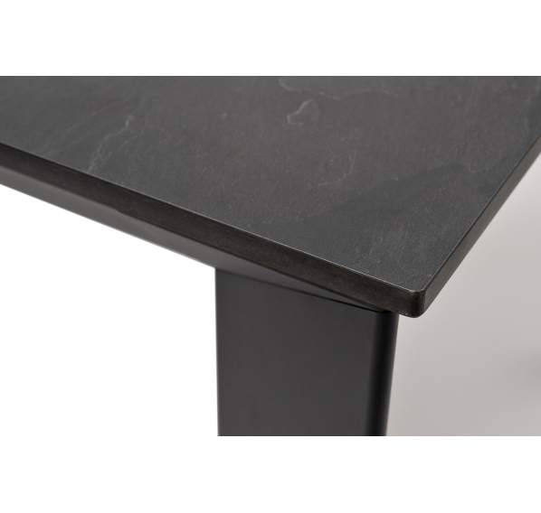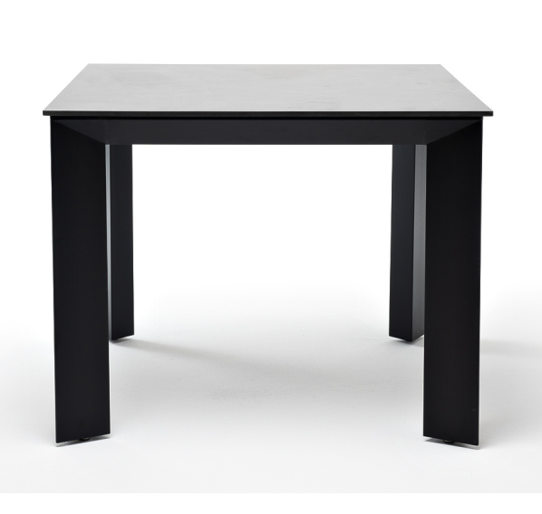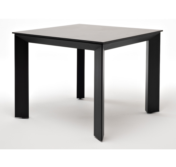 Столешница выполнена из современного высококачественного монолитного компакт-пластик HPL, толщиной 12 мм в цвете «серый гранит». Материал устойчив к высоким температурам, попаданию влаги и может использоваться как в помещении, так и на открытом пространстве. Подстолье изготовлено из крашеного алюминия черного цвета.