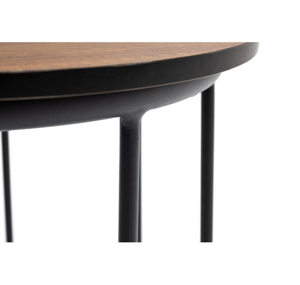 Круглый журнальный столик «Эквадор» каркас изготовлен из алюминия, окрашенного в темно-серый (RAL 7024) цвет. Столешница выполнена из высококачественного монолитного компакт-пластика HPL, толщиной 12 мм. Цвет столешницы - «дуб».