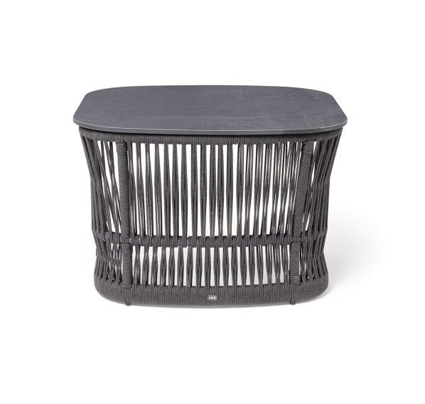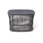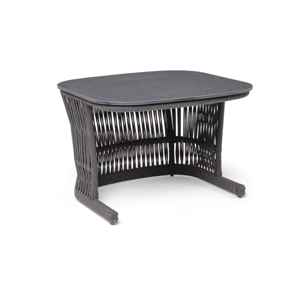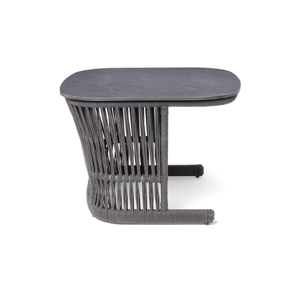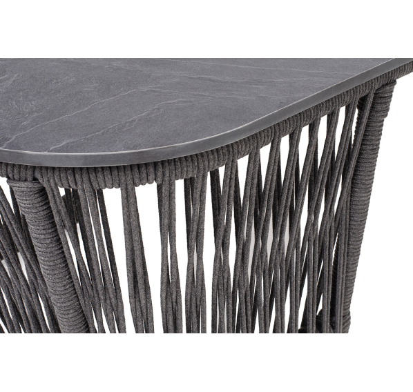 Подстолье - алюминиевая профильная труба, окрашенная износостойкой краской в темно-серый цвет. Нижняя часть задекорирована эластичными синтетическими лентами, состоящими из высокопрочных полиэфирных волокон, аналогичного оттенка.