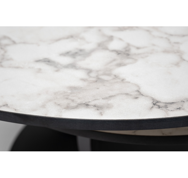 Столешница изготовлена из прочного и устойчивого к механическим воздействиям компакт-пластика HPL, цвет мрамор «каррара». Высота между столиками 1,2 см.