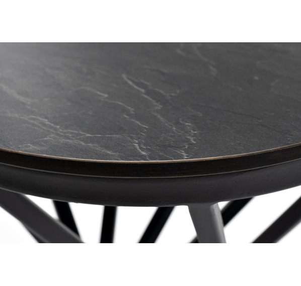 Круглый журнальный столик «Сантьяго» каркас изготовлен из стали, окрашенного в темно-серый цвет. Столешница выполнена из высококачественного монолитного компакт-пластика HPL, толщиной 12 мм. Цвет столешницы - «серый гранит».