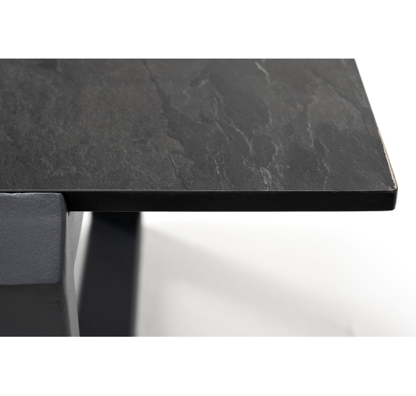 Журнальный стол «Варадеро» каркас изготовлен из алюминия, окрашенного в темно-серый цвет. Столешница выполнена из высококачественного монолитного компакт-пластика HPL, толщиной 12 мм. Цвет столешницы - «серый гранит».