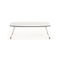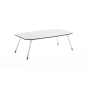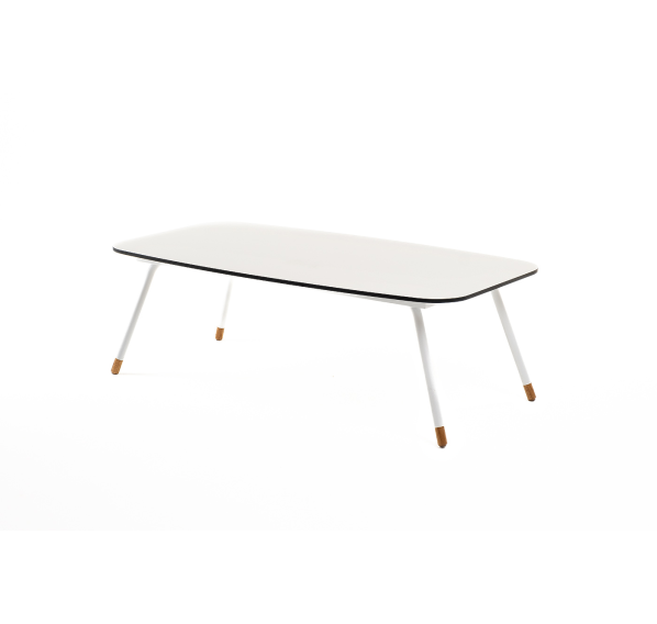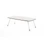 Каркас столика изготовлен из алюминия, окрашенного в белый цвет. Алюминий является легким и прочным материалом, что обеспечивает долговечность и надежность изделия. На ножках столика идут дубовые наконечники (заглушки).