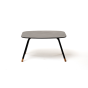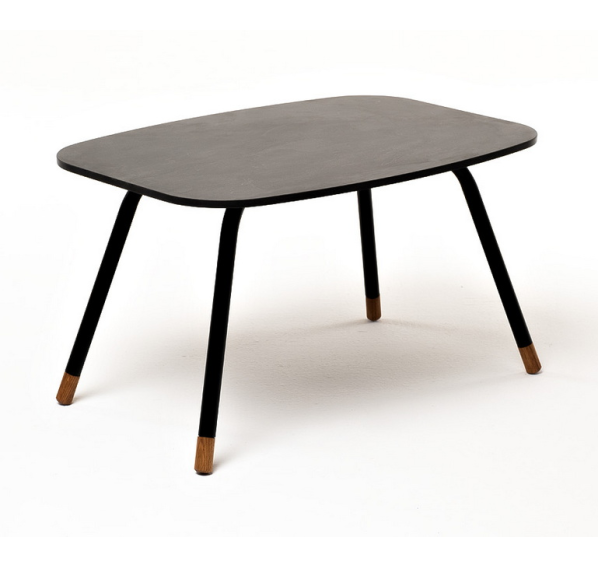 Каркас столика изготовлен из алюминия, окрашенного в черный цвет. Алюминий является легким и прочным материалом, что обеспечивает долговечность и надежность изделия. На ножках столика идут дубовые наконечники (заглушки).