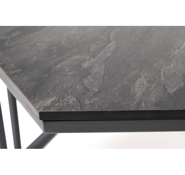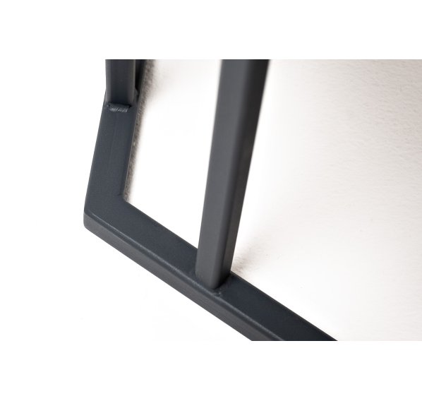 Подстолье журнального столика изготовлено из стали, окрашенной в черный цвет водостойкой порошковой краской, а столешница выполнена из качественного монолитного компакт-пластика HPL в цвете «серый гранит».