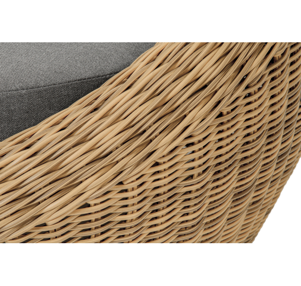 Для оплетки каркаса используется высококачественный искусственный ротанг. Мебель выполнена в соломенном цвете.