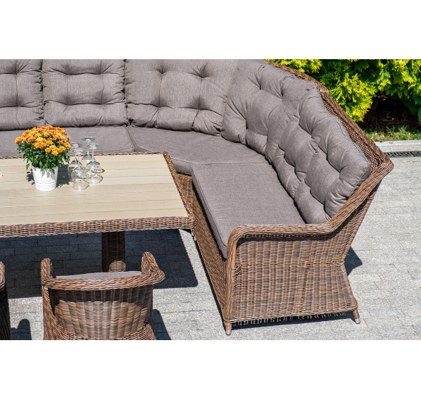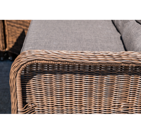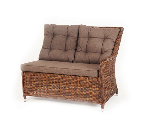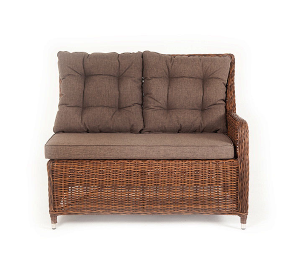 Плетеный левый модуль дивана «Бергамо», алюминиевый каркас, круглый искусственный ротанг, ручное плетение, цвет коричневый, размер 1150×900×990 мм.