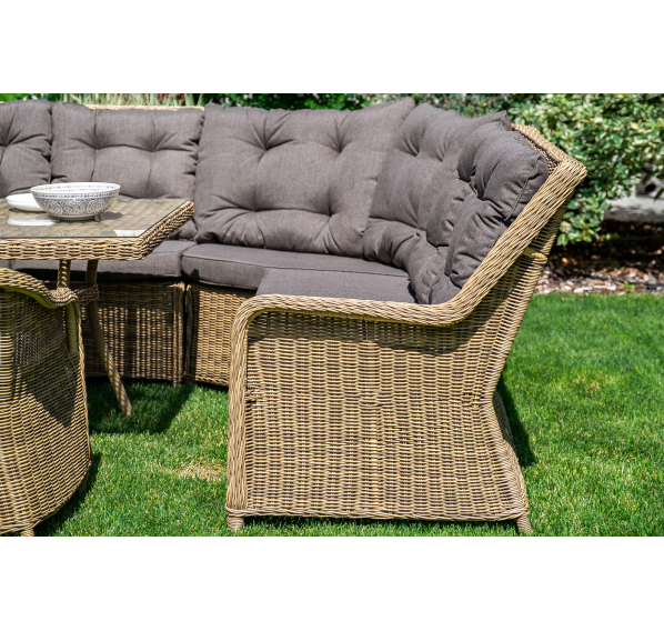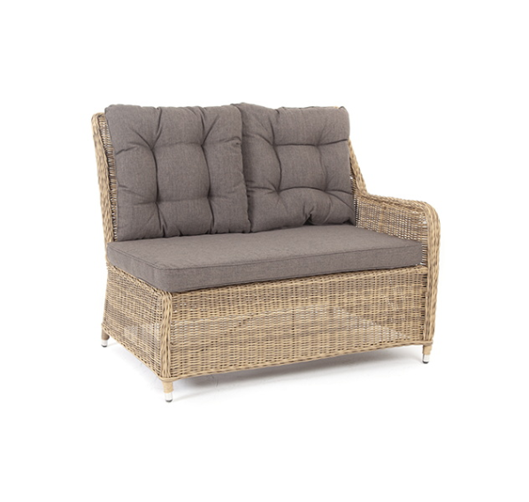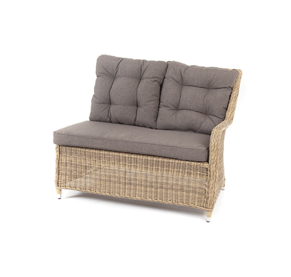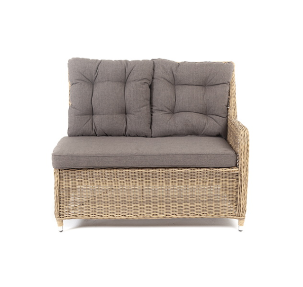 Плетеный левый модуль дивана «Бергамо», алюминиевый каркас, круглый искусственный ротанг, ручное плетение, цвет соломенный, размер - 1150×900×990 мм.