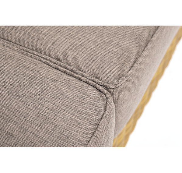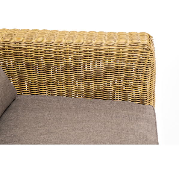Ручное круглое плетение является основным декоративным элементом мебели. Оно выполнено из искусственного ротанга в соломенном цвете.